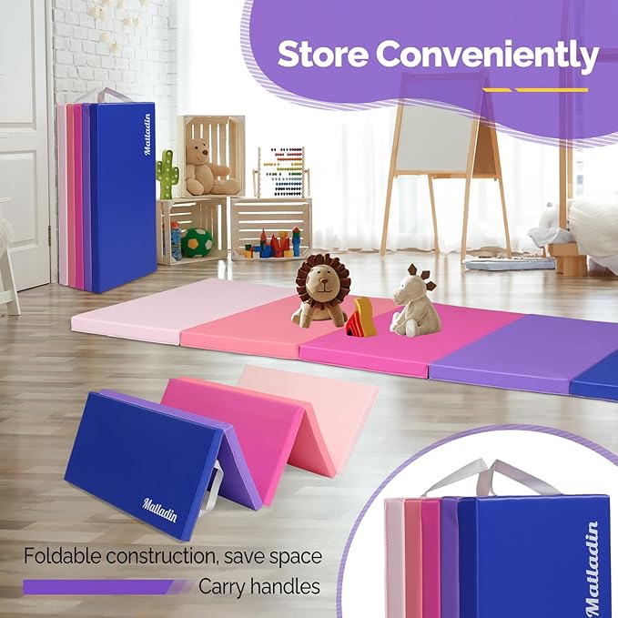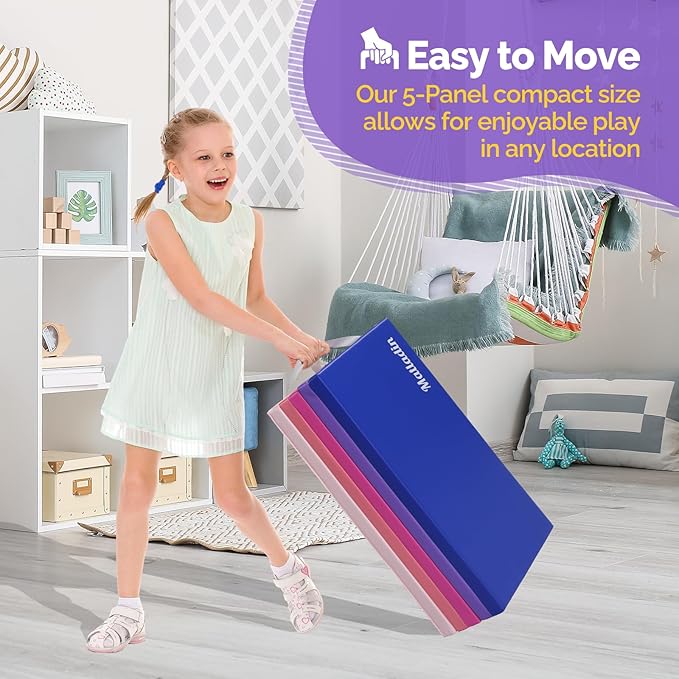 - 5-Foldable and Carry Handle - 5 panel allows for more easier carrying and convenient storage. Unfolded size is approx 76in x 30in x 1.5in (L x W x H) Weigh only 5.8LB, Lightweight for your little one