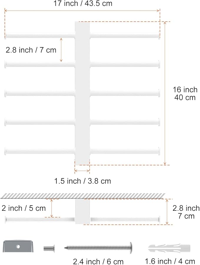 - Sizes and Material: Bridge sliding 5-Tier bath towel bar stretching on both sides can reach 15 Inch to 30 Inch, 1.5 inch/3.8cm tube diameter, screws length 2.4"/ 6cm, you can install it in any length if you wish. Constructed of premium thicken, ANTI-RUST solid and durable stainless steel. Perfectly smooth oil rubbed white finish is built to resist daily scratches, corrosions, and tarnishing.