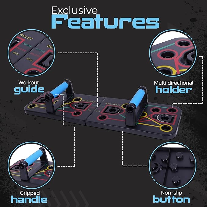• Foldable push-up board: This home workout equipment, including the foldable push-up board and, features a modern and ergonomic overall design for user comfort. From the perfect pushup, each piece is crafted with simplicity and efficiency, ensuring an enjoyable workout.