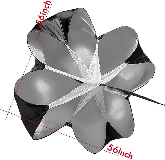 • 【Perfect Size】Diameter: Approx 56inch, can provide 15-30 lbs (1 umbrella) of resistance. You can tie two or more resistance parachute to improve sport effect.