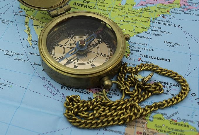 - 🧭 WORKING NAVIGATION INSTRUMENT : Fully functional for finding direction and location, constructed of brass. An antique style reproduction Navigational Magnetic Compass, perfect nautical decor for your desk, boat, or home. A truly impressive and unique gift perfect for any occasion. Handmade Compass with brass chain and Leather Storage Case.