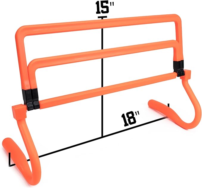 - Snap On Extenders: Increase workout intensity levels with two height extenders per hurdle, snap on and adjust hurdles to heights of 6", 9.25", 11.75", and 15". Each hurdle is a standard size of 45 cm wide