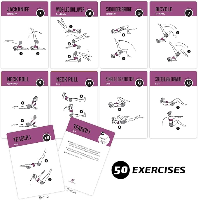 62 Pilates Exercise Cards 50 Exercises, 12 Stretches 6 Training