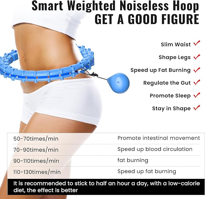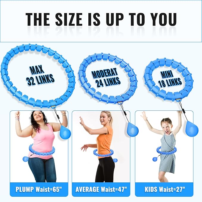 - 【Great Gifts Choice 】 Weight loss fit hoops suit age 6+ & adults. You can assemble the right hoops to fit your waistline, making it suitable for people of all sizes. Are you still struggling to pick a birthday gift or present for your mom? weighted hoop will be your perfect choice! If you have any questions or problems with the weight hoop, please contact Customer Service.
