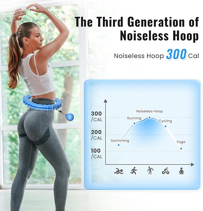 - 【 Upgraded Quiet Fitness Hoops 】The latest upgraded model of the silent Infinity fitness hoops, between the Detachable Knots not only increased the buffer layer but also upgraded the rollers material, significantly reducing the noise(only 40 decibels). According to the decibel meter calculations, our hula can reach one-third of the current market intelligent weighted hoop decibels. Make your ears more comfortable, can be used anywhere.