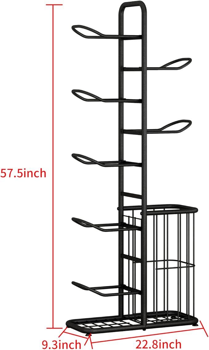 - 🏀【Scientific and Humanized Design】The space-saving design of this ball rack can be placed in those underutilized tall and narrow wall areas in the garage, usually between the garage doors or indoors or on the balcony or backyard. This makes it a perfect indoor basketball rack and outdoor ball storage solution.