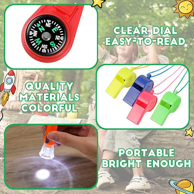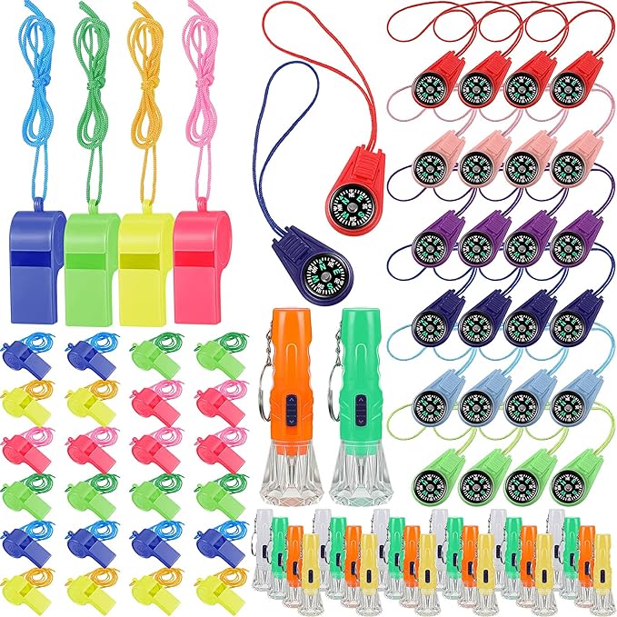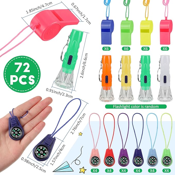 - Diverse Applications: small plastic compass, flashlight and whistle are ideal camping party supplies, suitable for outdoor activities, camping, hiking, school activities, party souvenirs, gift supplies, goodie bag fillers, class prizes, carnival prizes and so on, bringing aloft of fun