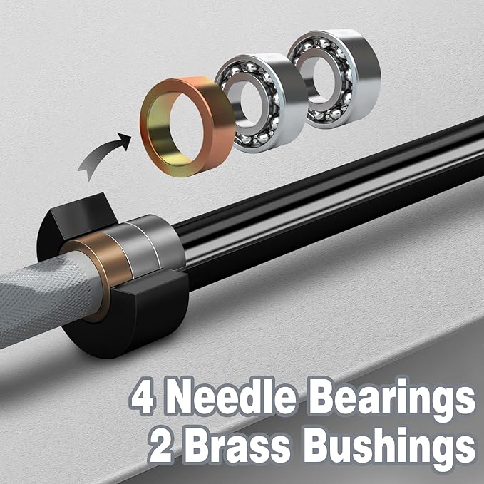 • Excellent Bearing Rotation System: Featuring high-quality bearing rotation system, this barbell delivers exceptional rotation for fluid and stable lifts. The low-friction design minimizes wrist stress and enhances movement efficiency, making it perfect for explosive and dynamic exercises.