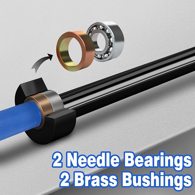 • Excellent Bearing Rotation System: Featuring high-quality bearing rotation system, this barbell delivers exceptional rotation for fluid and stable lifts. The low-friction design minimizes wrist stress and enhances movement efficiency, making it perfect for explosive and dynamic exercises.