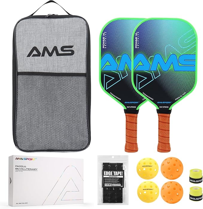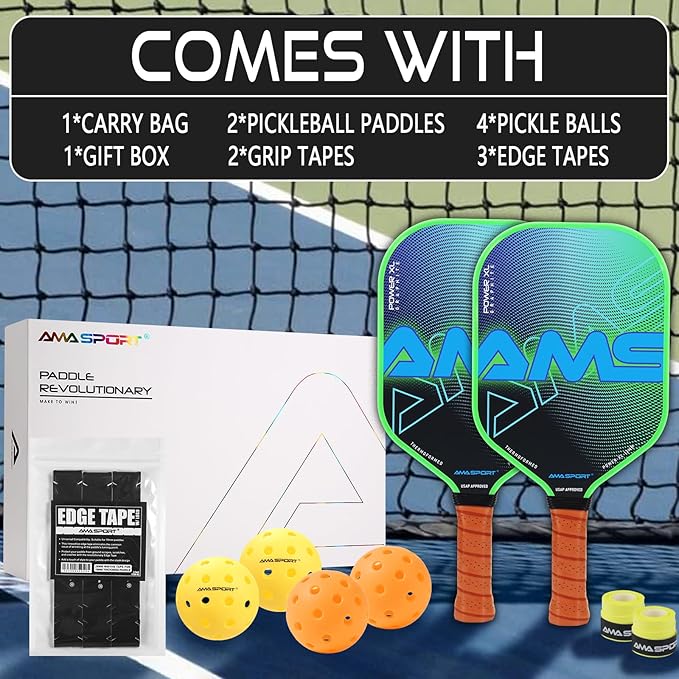 AMA SPORT Pickleball Paddles Set of 2 USAPA 1Portable Carry 2 Pickleball 3 Edge 4 Pickleballs, 2 Grip
