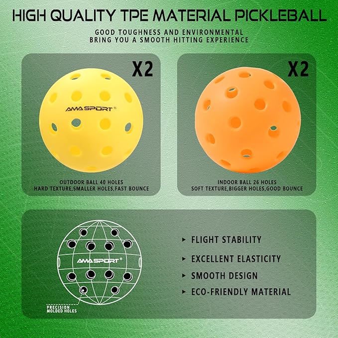 - 【Premium Fiberglass Pickleball Paddles 】Ama Sport pickleball paddles cafted with high-quality fiberglass, offer exceptional durability and superior ball control for players of beginner players.
