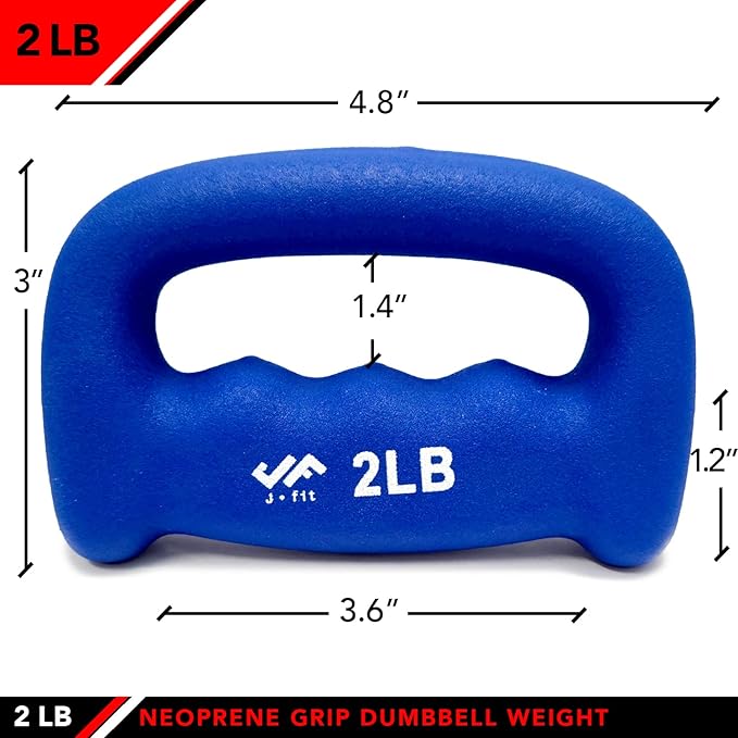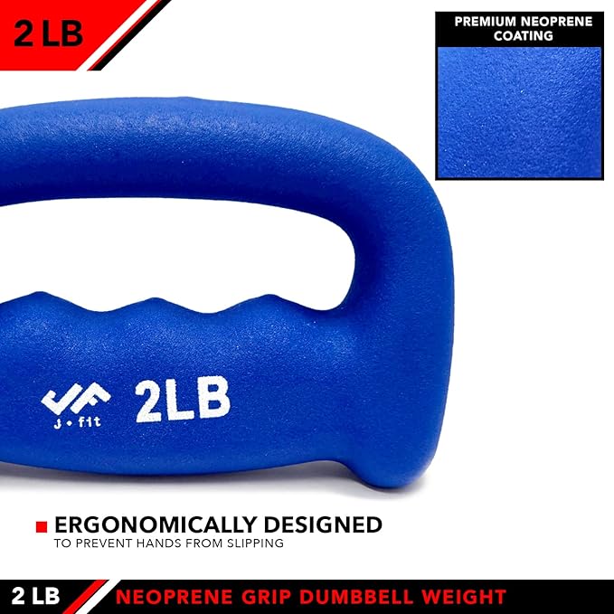 JFIT Neoprene D Grip Dumbbells - Single Weights 1LB-5LB - Premium Non-Slip, Hand Weights, Ergonomic Design