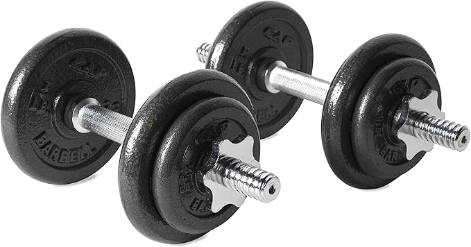 - Construction durable cast iron plates have a semi-gloss finish offers a rust and maintenance free product; Dumbbell handles are made from solid steel
