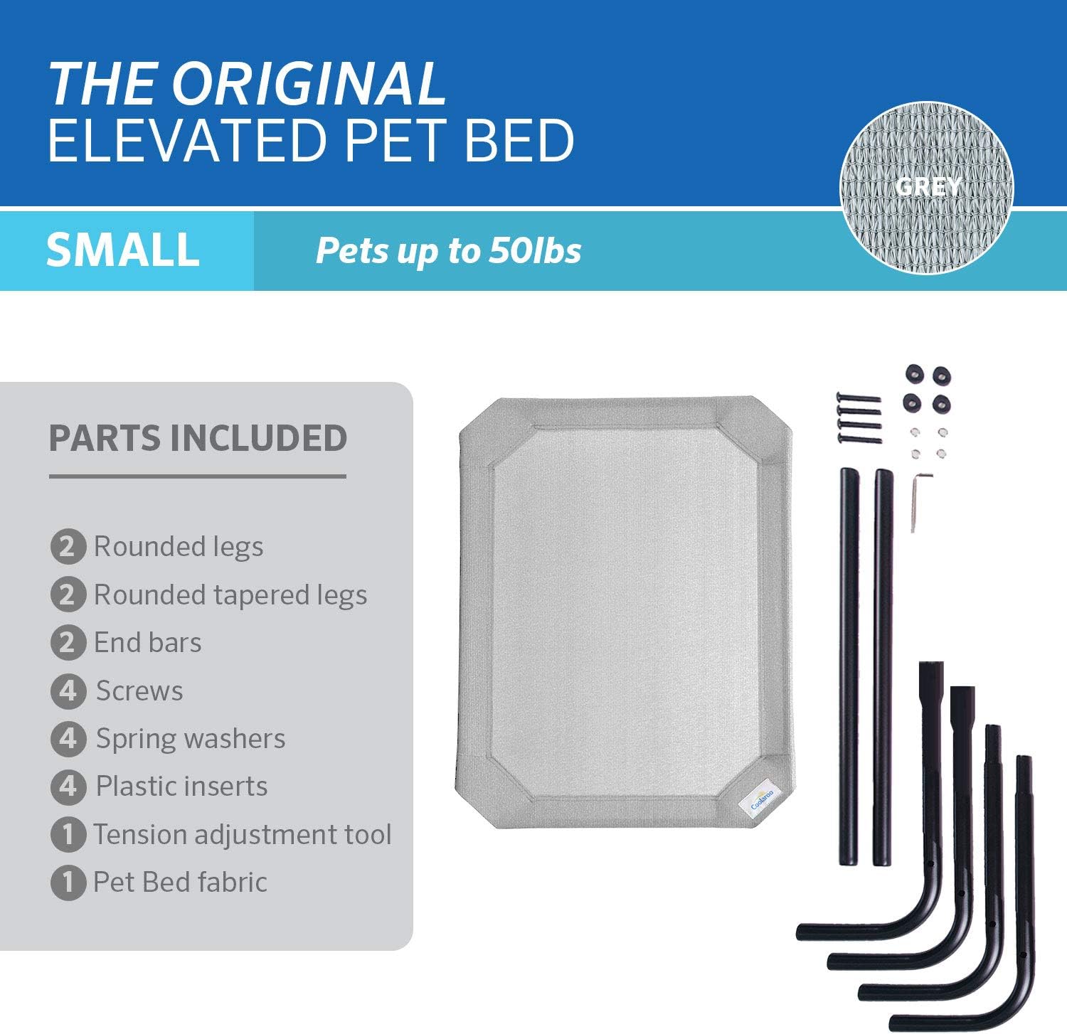 Coolaroo Original Elevated Dog Bed - Breathable Off-The-Ground Pet Bed with Cooling Fabric, Joint Relief & Moisture-Resistant Fabric, 100% Recyclable, Easy Clean, Grey, Small