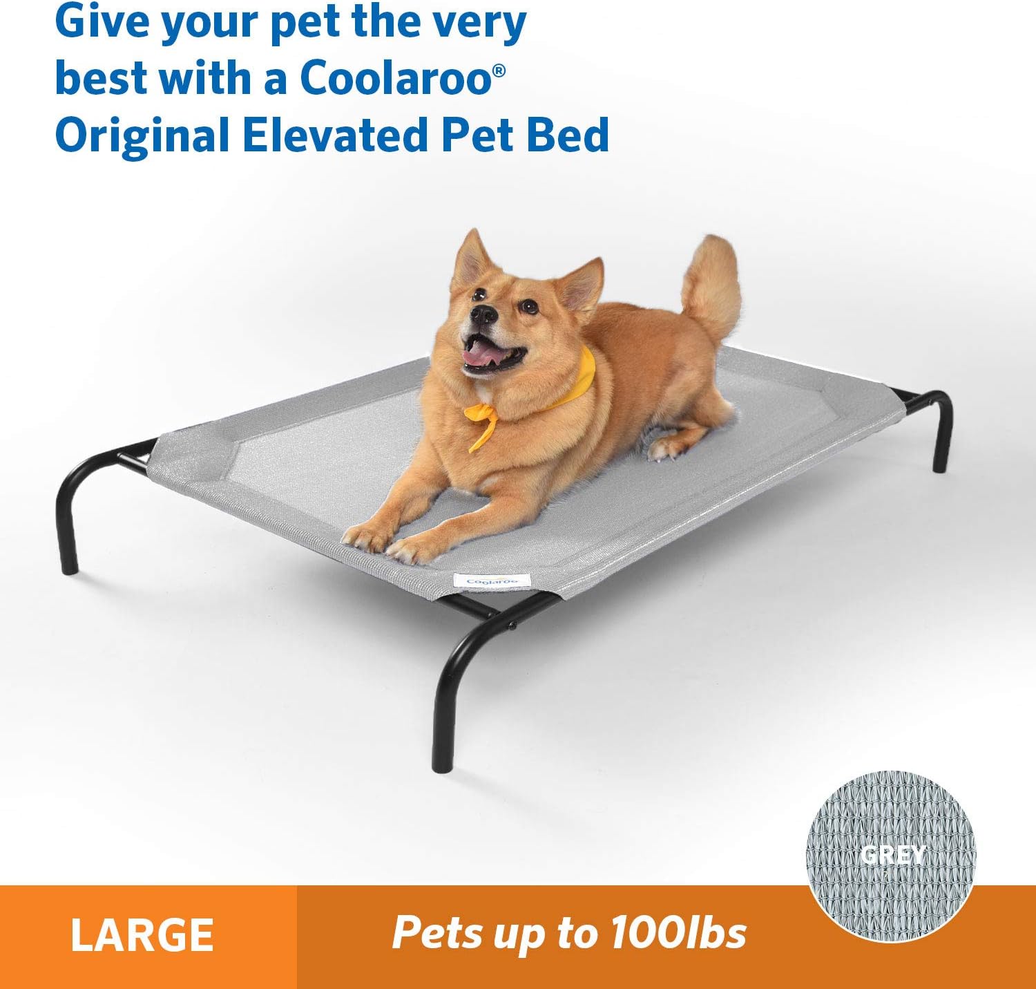 Coolaroo Original Elevated Dog Bed - Breathable Off-The-Ground Pet Bed with Cooling Fabric, Joint Relief & Moisture-Resistant Fabric, 100% Recyclable, Easy Clean, Grey, Large