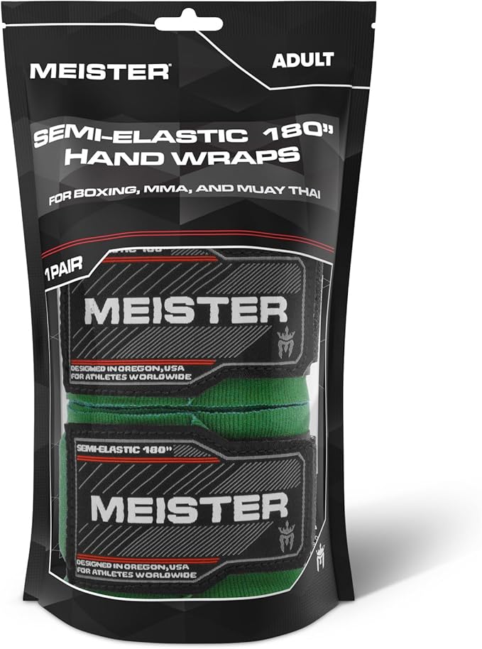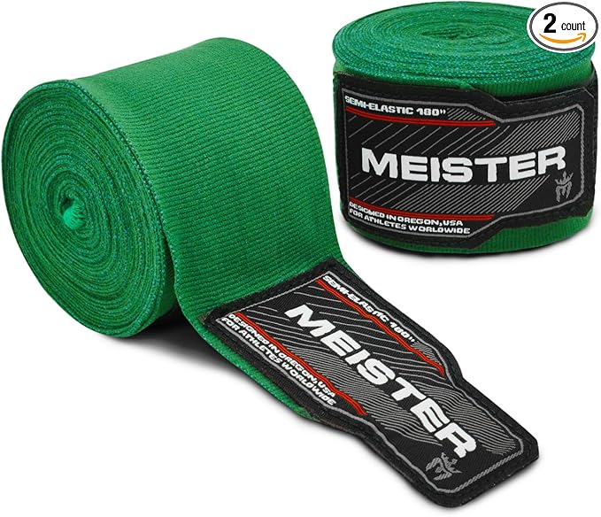 Meister Adult 180" Semi-Elastic Hand Wraps for MMA & Boxing (Pair)