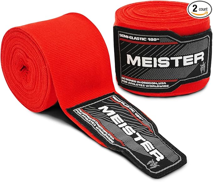 Meister Adult 180" Semi-Elastic Hand Wraps for MMA & Boxing (Pair)