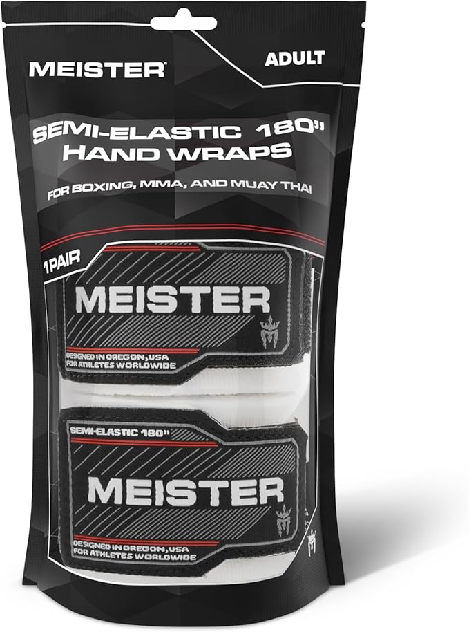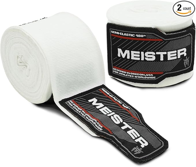 Meister Adult 180" Semi-Elastic Hand Wraps for MMA & Boxing (Pair)