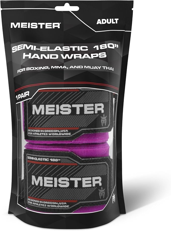 Meister Adult 180" Semi-Elastic Hand Wraps for MMA & Boxing (Pair)