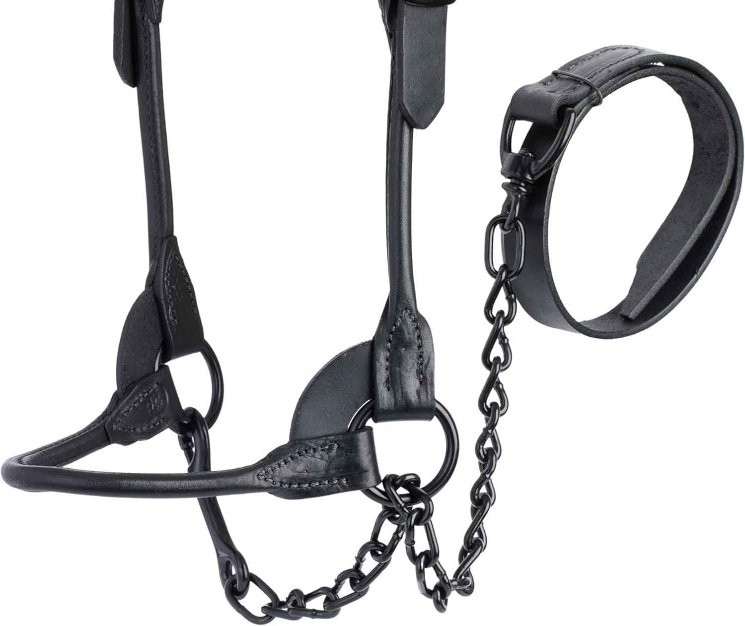 - Constructed from black bridle leather with black hardware that blends in with the animal's hair