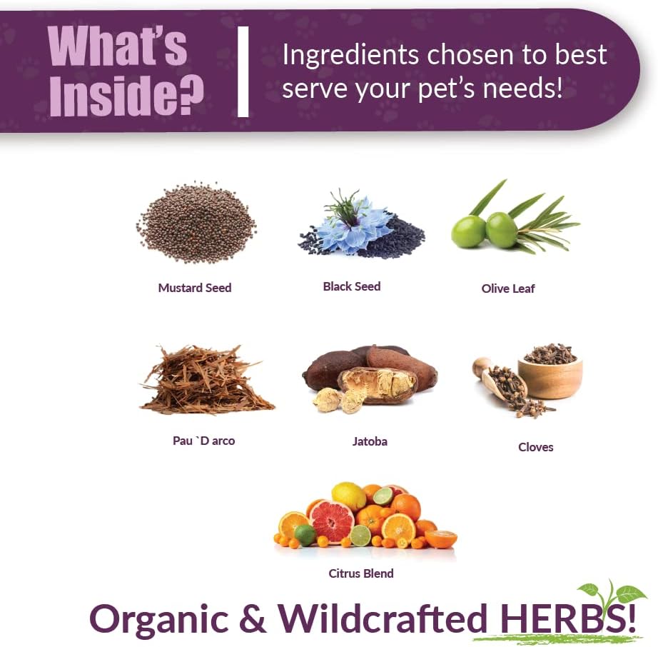 - Herbal Blend Product: Amber NaturalZ Kochi Free is globally sourced and manufactured in the USA containing our proprietary blend of organic and wildcrafted herbs. These include Mustard Seed, Black Seed, Olive Leaf, Pau D’arco Bark, Jatoba, Cloves, and Citrus Blend.