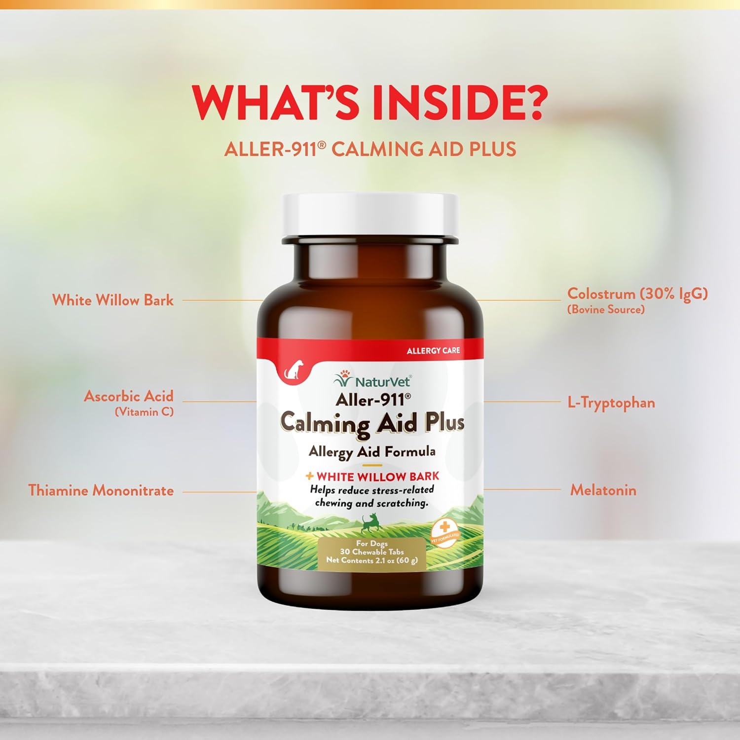 - HIGH-QUALITY ALLERGY SUPPLEMENT FOR DOGS: Help your furry friend weather the changes in season with this NaturVet Aller-911 Calming Aid & Allergy Aid Dog Supplement. This pet supplement is rich in antioxidants and nutrients to reduce stress and symptoms of seasonal allergies.