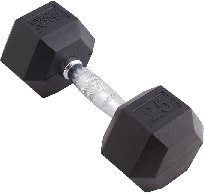 Body Sport Rubber Encased Hex Dumbbell Weight, Single – Dumbbells for Exercises – Strength Training Equipment – Home Gym Accessories – Weight Training