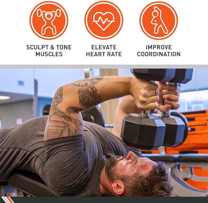 - BUILD STRENGTH – Build, tone and sculpt your muscles while burning calories and increasing your metabolism when you work out with Body Sport Rubber Hex Dumbbells.