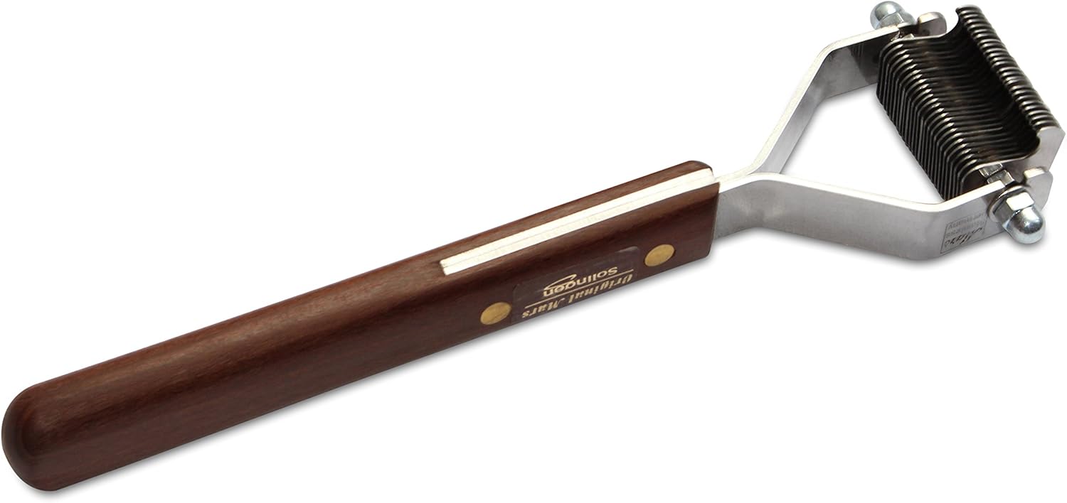 - RELIABLE DOG GROOMING TOOL: Made with stainless steel and a wooden handle for an easy grip, this pet rake stripper tool is perfect for deshedding and thinning your cat or dog’s coat.