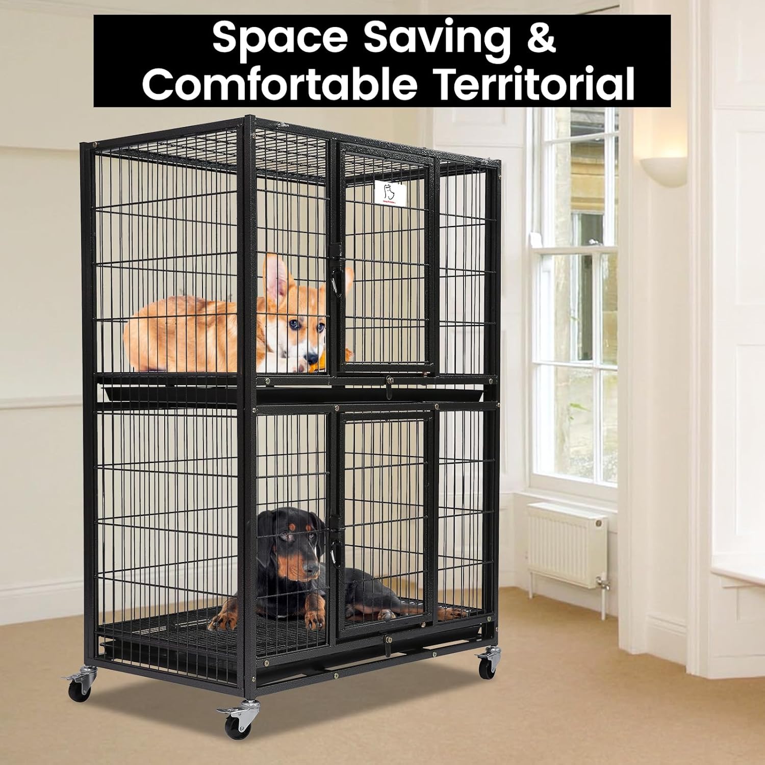 - Sturdy Integrated Design: Our two-tier 31 inch dog crate for small dogs features an integrated design, providing exceptional stability and reducing the tipping or wobbling. The overall dimensions are 31"L x 20.3" Wx 45.67"H, with each tier measuring 18.1" in height, accommodating pets up to 45 pounds per tier. This vertical space-saving design is ideal for breeders, kennels, multi-pet households, pet hospitals, and groomers