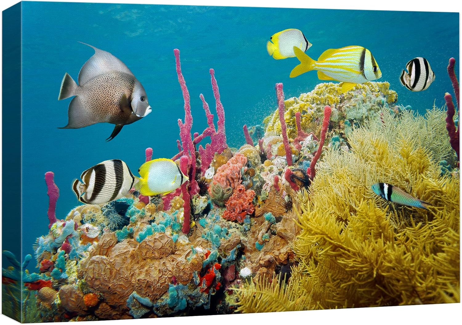 wall26 Canvas Print Wall Art Deep Sea Marine Fish with Coral Reef Nature Ocean Photography Realism Nautical Scenic Relax/Calm Multicolor Ultra for Living Room, Bedroom, Office - 24"x36"
