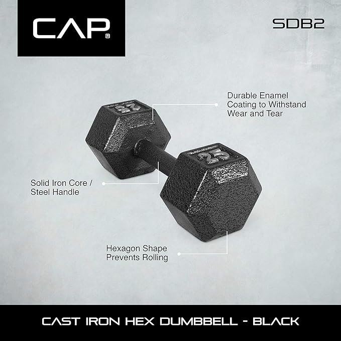 CAP Barbell Black Cast Iron Hex Dumbbell | 5-120 LBs | Single or Pair