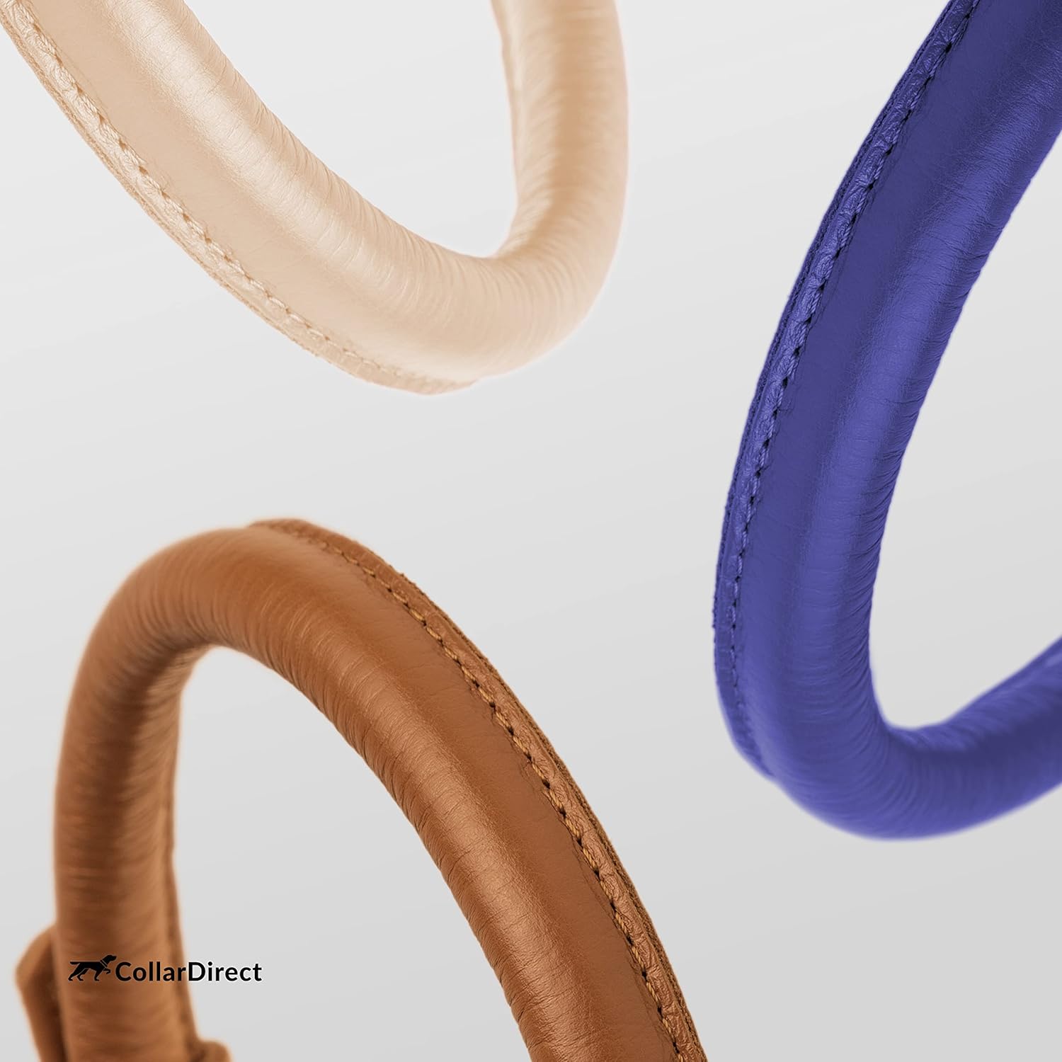 CollarDirect Rolled Leather Dog Collar, Soft Padded Round Puppy Collar, Handmade Genuine Leather Collar Dog Small Large Cat Collars 13 Colors (6-7 Inch, Purple Textured)