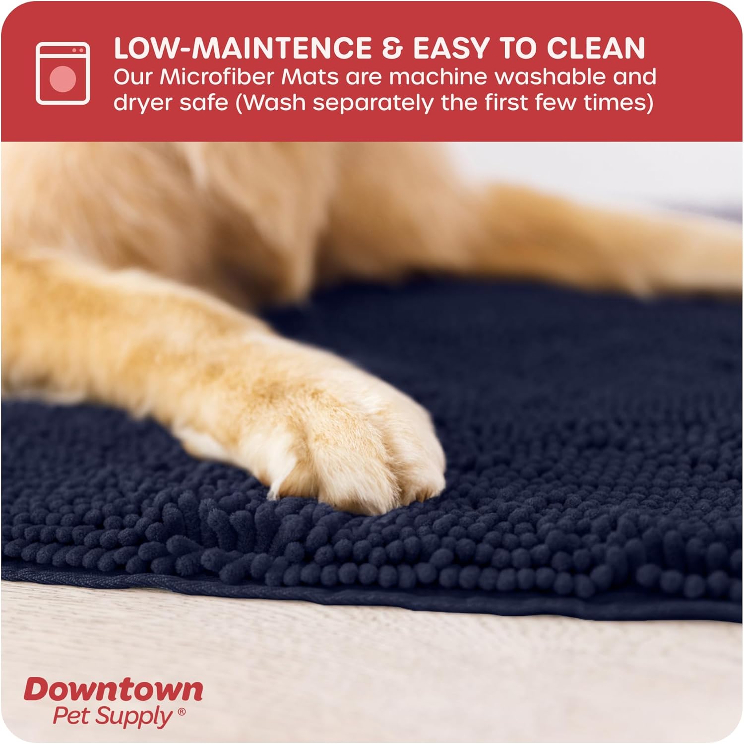 My Doggy Place Microfiber Dog Mat for Muddy Paws, 31" x 20" Navy Blue - Absorbent and Quick-Drying Dog Paw Cleaning Mat, Washer and Dryer Safe - Non-Slip Rubber Backed Dog Floor Mat, Medium