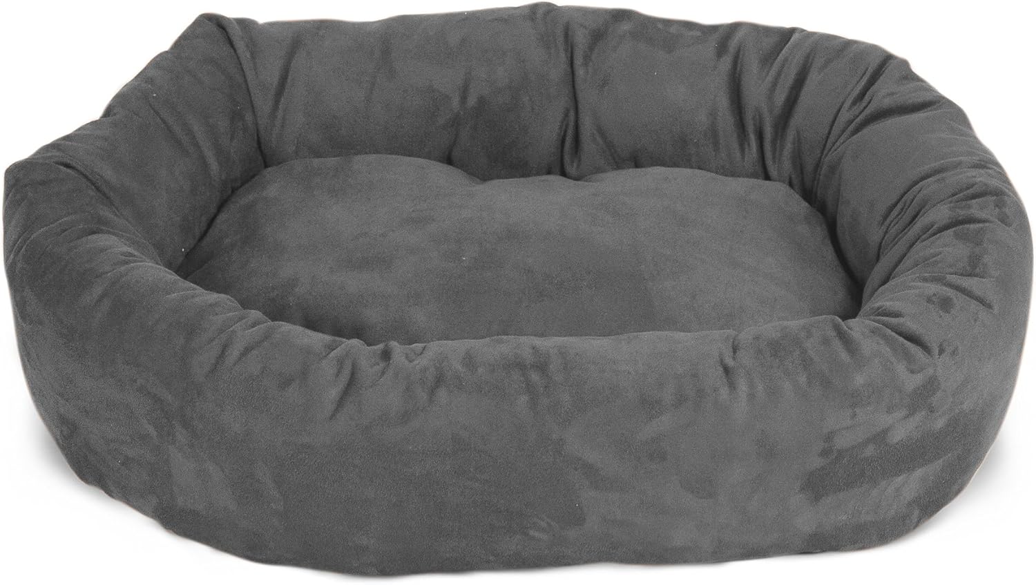 Majestic Pet 32 Inch Suede Calming Dog Bed Washable 32x23x7 (Inch) – Cozy Soft Round Donut Dog Bed with Spine Support for Dogs to Rest Their Head - Pet Bed Medium – Gray