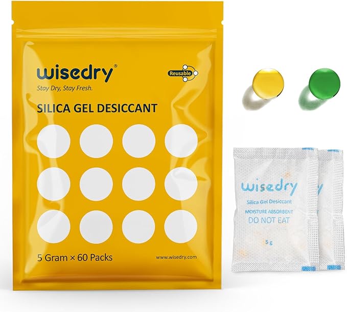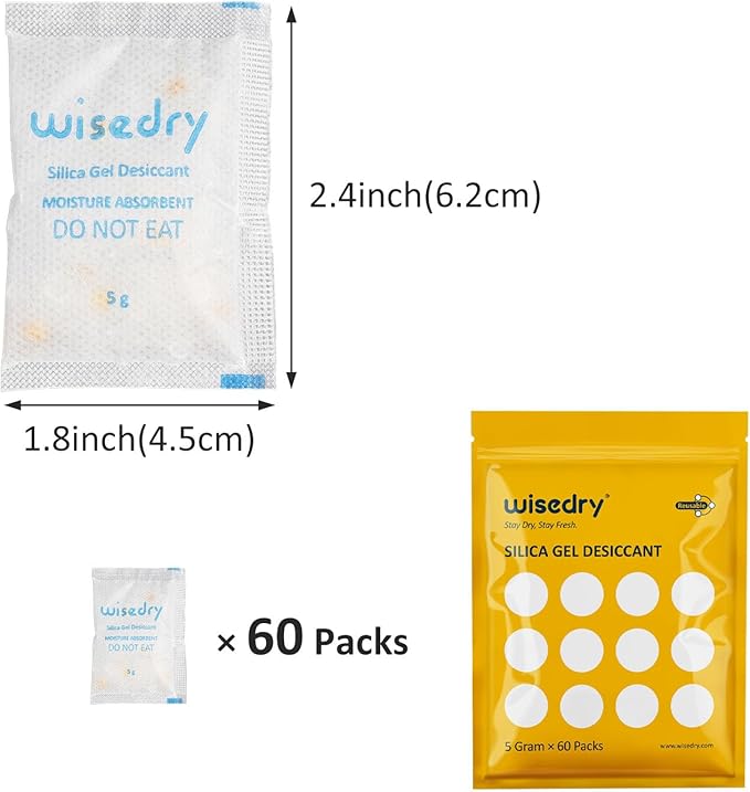 - ✅ [ Safe Double Packing & Easy Storage ] - 5 grams x 60 packs, hermetically packed inside, a zip lock bag sealed outside, to protect the desiccant packs from moisture before use, also easy to store the unused sachets.