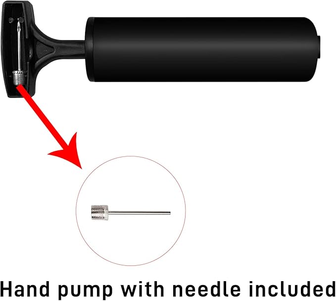 - Included in the package is a hand pump with a needle for easy and convenient inflation.