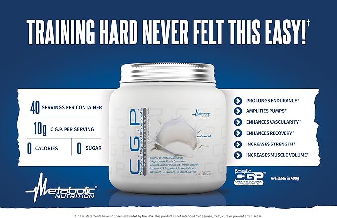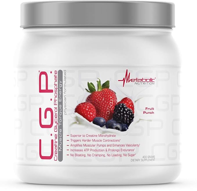 Metabolic Nutrition, CGP, Creatine Glycerol Phosphate, 100% Micronized Creatine Powder, Pre Intra Post Workout Supplement, Fruit Punch, 400 Grams (40 Servings)