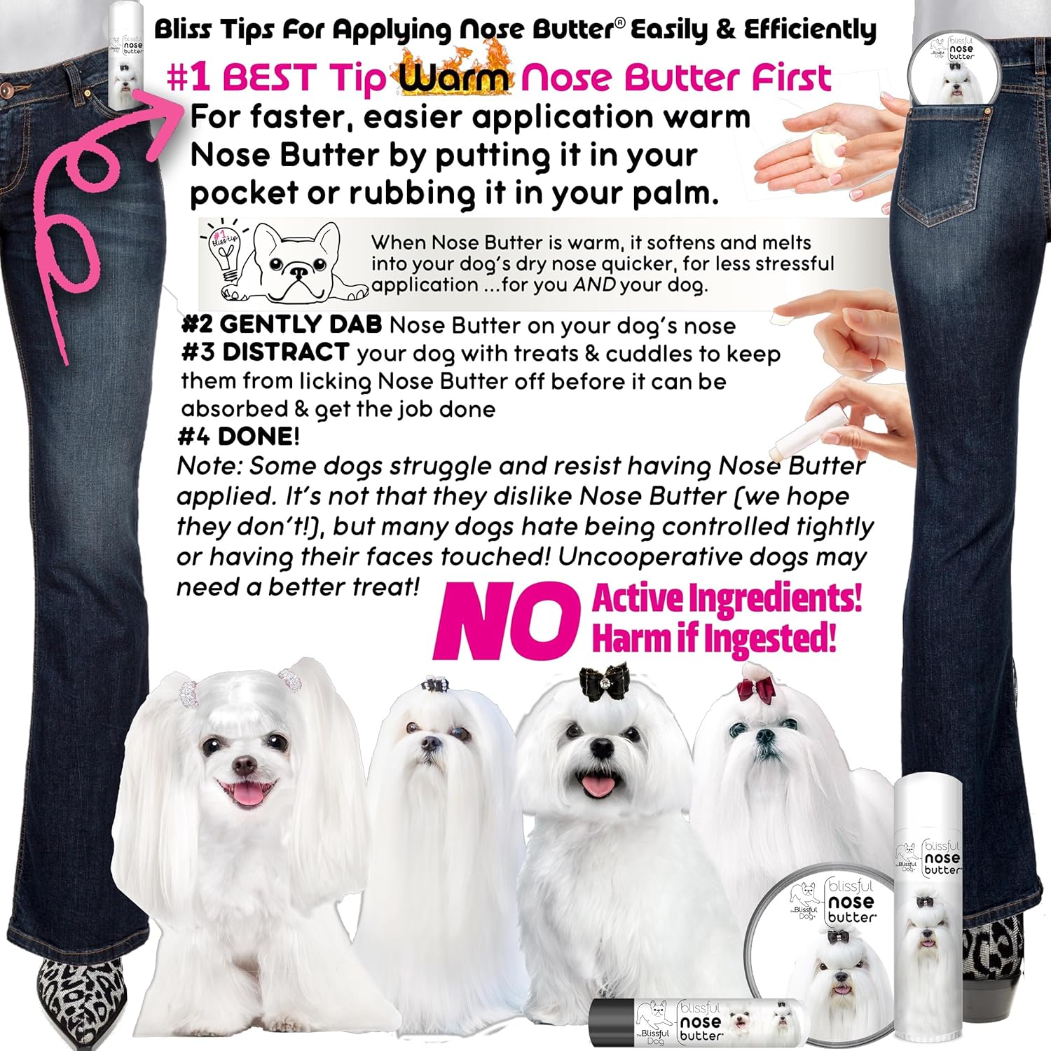 - EASY, CLEAN APPLICATION: Just warm, dab, and gently massage the nose butter 2-3 times a day for the first 2-3 days or until their nose improves. The mess-free, non-greasy formula is handcrafted in the USA for dogs of all breeds and life stages.