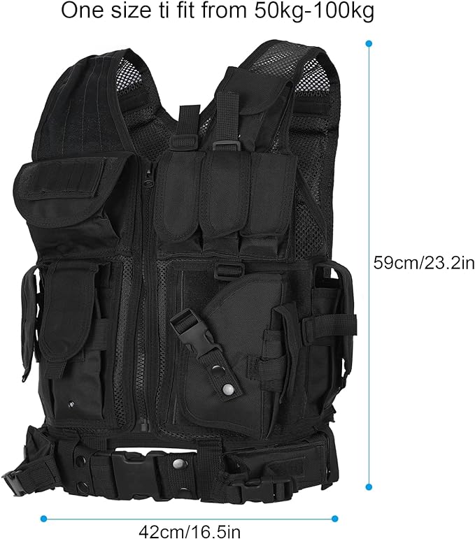 - BREATHABLE MESH: Tactical vest is mounted on tough nylon mesh material, more ventilative.