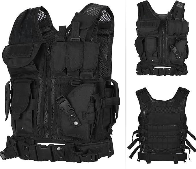 - NUMEROUS POCKETS: The tactical vest come with a lot of useful pockets with zippers or buckles, provides large and secure storage.