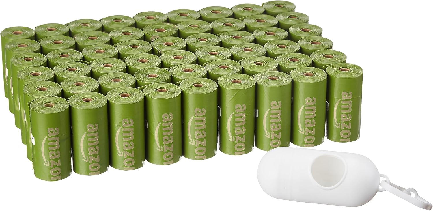 Amazon Basics Dog Poop Bags with Dispenser, 810 Count, Enhanced for Guaranteed Leakproof, Brazilian Mango Scented, Includes Leash Clip