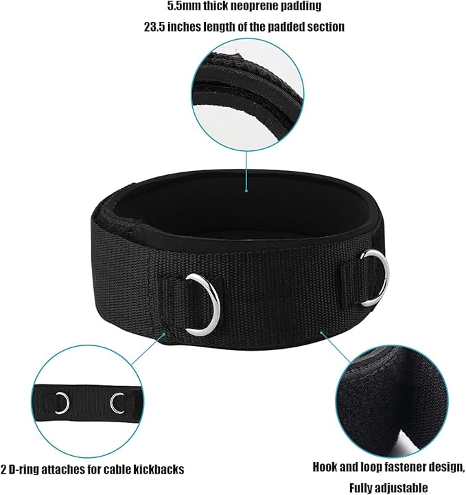 - 2 D-Ring attaches easily to do cables kickbacks and resistance trainers.