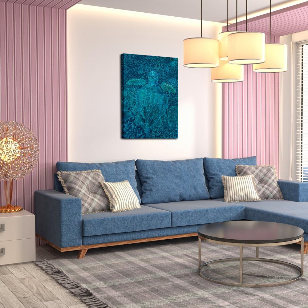 KREATIVE ARTS - Green Turtle Hidden in Coral Canvas Prints Sea Wall Art Underwater Sea Painting Print On Canvas Animal Pictures Framed Artwork For Home Office Decoration Gift 24x36inch