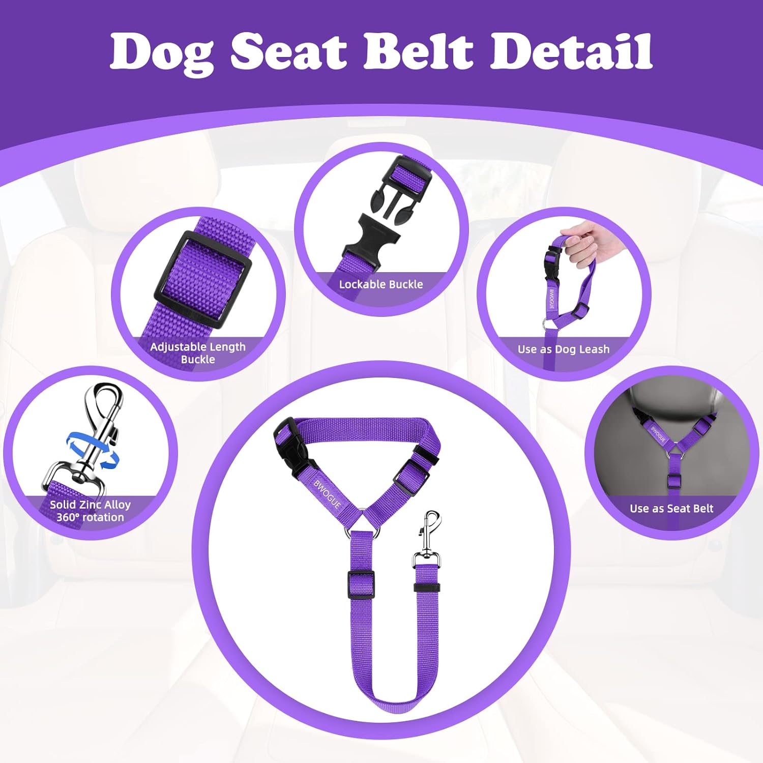 BWOGUE 2 Packs Dog Cat Safety Seat Belt Strap Car Headrest Restraint Adjustable Nylon Fabric Dog Restraints Vehicle Seatbelts Harness Purple