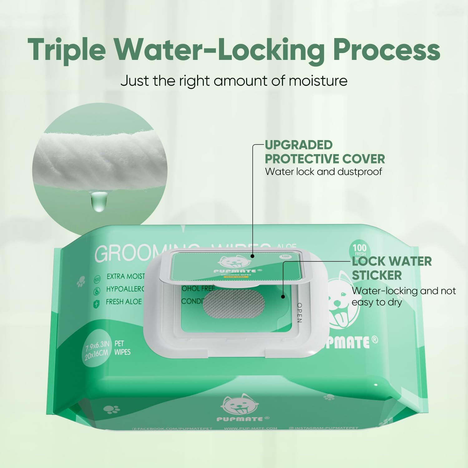 - DELICATE AND EFFICIENT CLEANSING: At PUPMATE, These grooming wipes for dogs & cats, and puppies wipes go beyond cleaning – they embody our commitment to creating a happier, healthier life for pets. Whether it's ridding them of dirt, mud, or a weird smell, our pet wipes work diligently to cleanse their butt, eyes, ears, and paws, ensuring that their four-legged friend feels consistently clean and delightfully refreshed