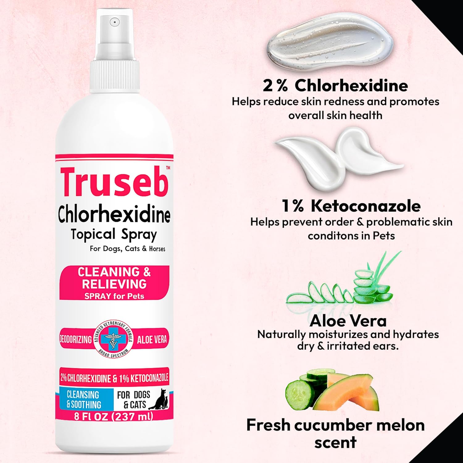 Truseb Topical Ketoconazole and Chlorhexidine Spray for Dogs, Cats, and Horses with Aloe - 8 oz (Ketoconazole & Chlorhexidine Spray, 8 oz)