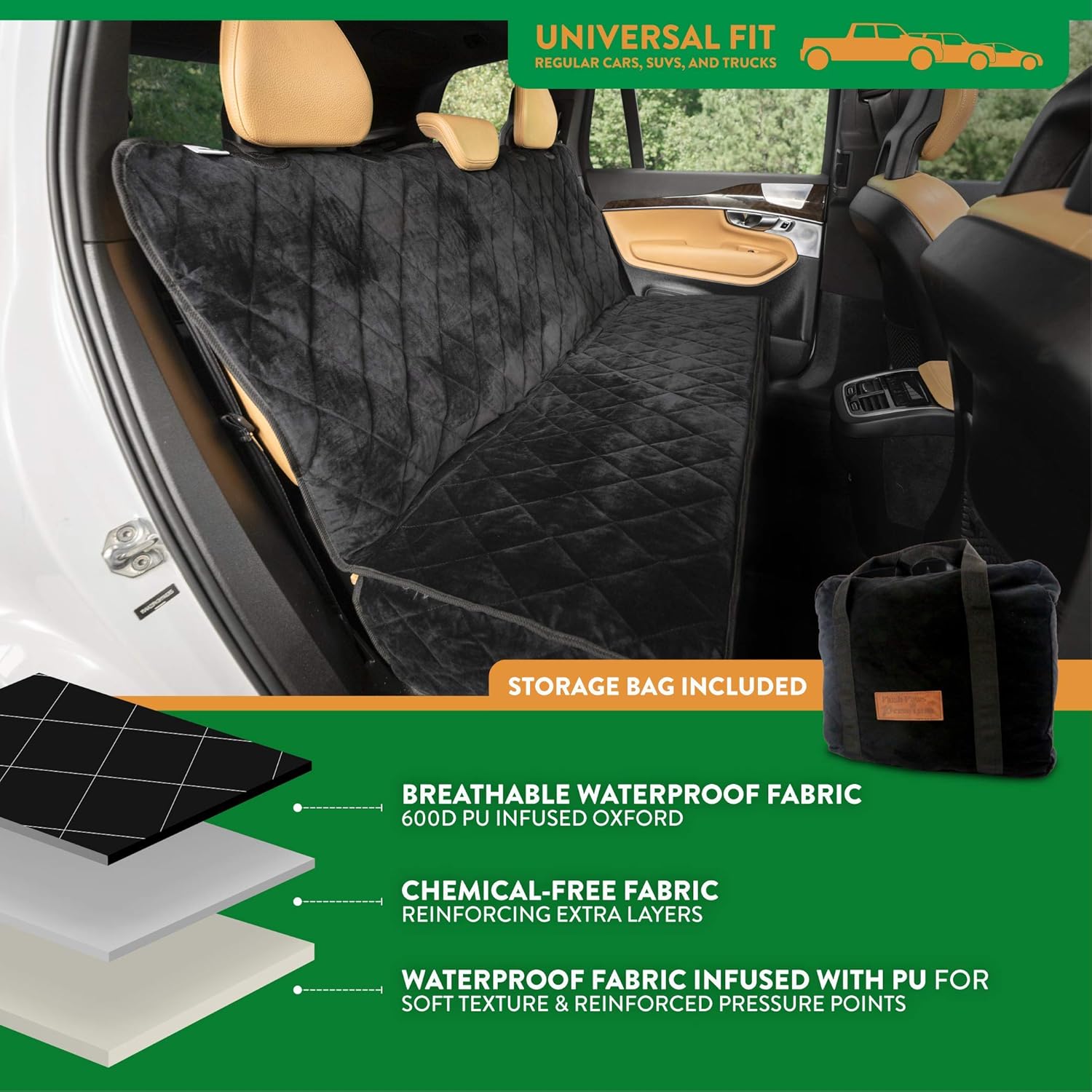 Plush Paws Products Velvet Rear Car Seat Protector w/Hammock | Washable & Waterproof Back Seat Dog Cover for Car, Truck, & SUV | Nonslip, Tear Resistant Pet Seat Cover | X-Large Charcoal