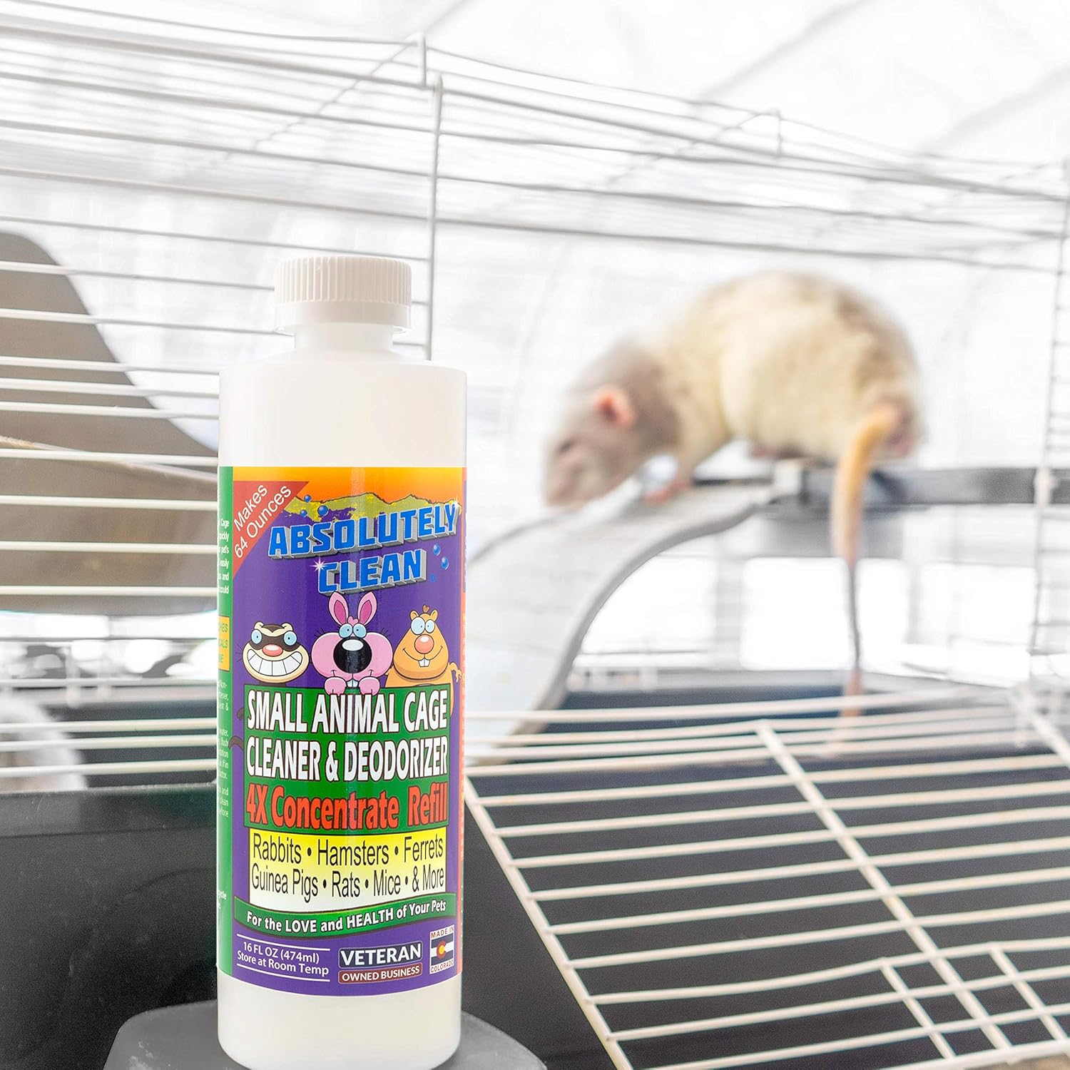- POWERFUL NATURAL ENZYMES: Absolutely Clean Small Animal Cage Cleaner & Deodorizer uses Powerful, Natural Enzymes to break down the odors and stains from droppings in the cage. Our natural enzymes work to eliminate odors and attack caked on messes on contact, giving you an easy to use, all-in-one small animal cage stain and odor remover. A must have for anyone with small animals.