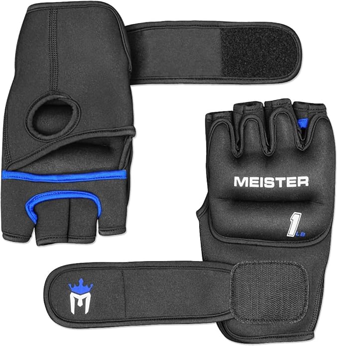 Meister Elite 1lb Neoprene Weighted Gloves for Cardio & Heavy Hands (Pair) - 1lb x 2